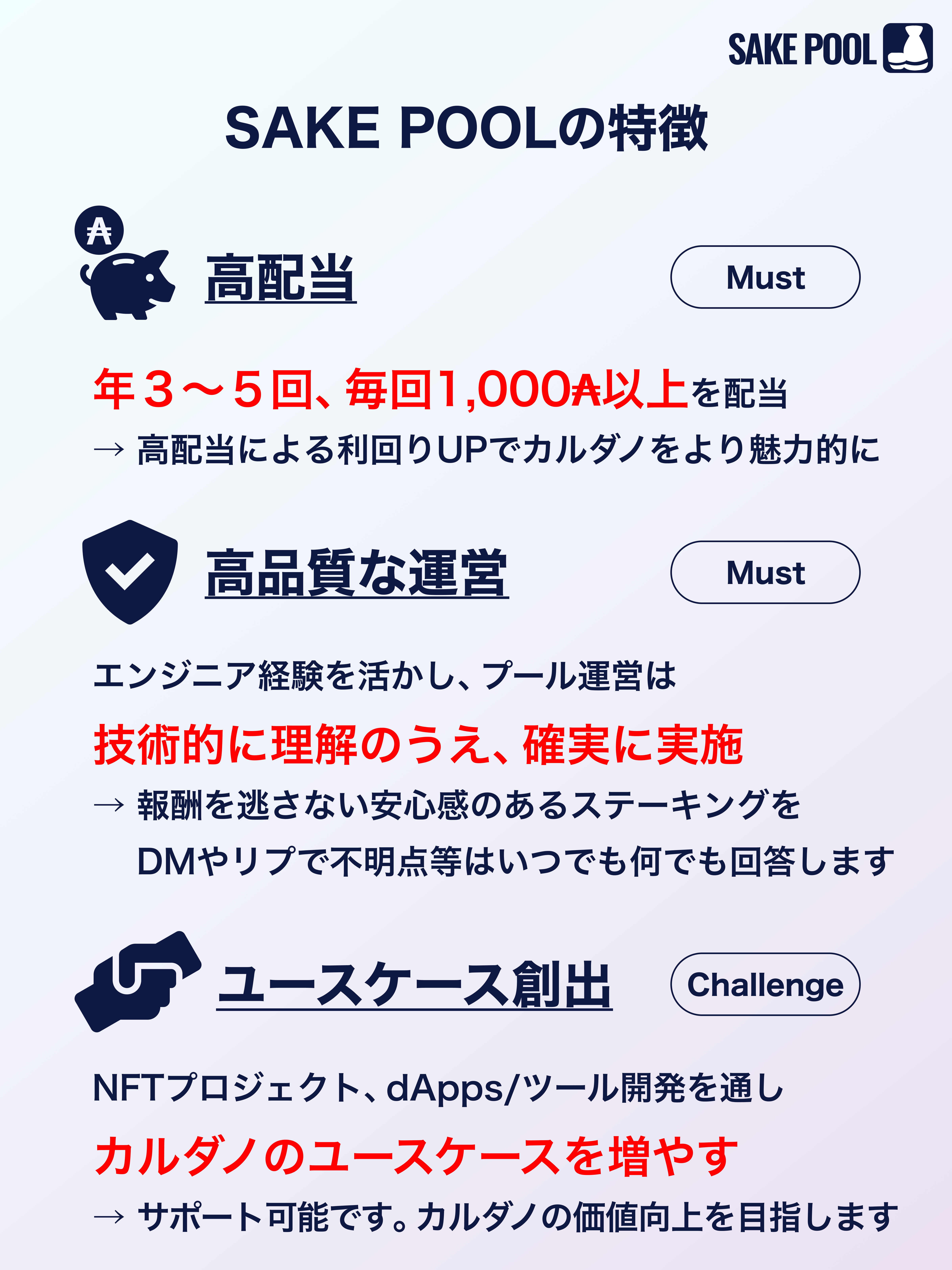 「プールが沢山ある中でSAKE POOLを選ぶメリットは?簡潔に教えて。」
