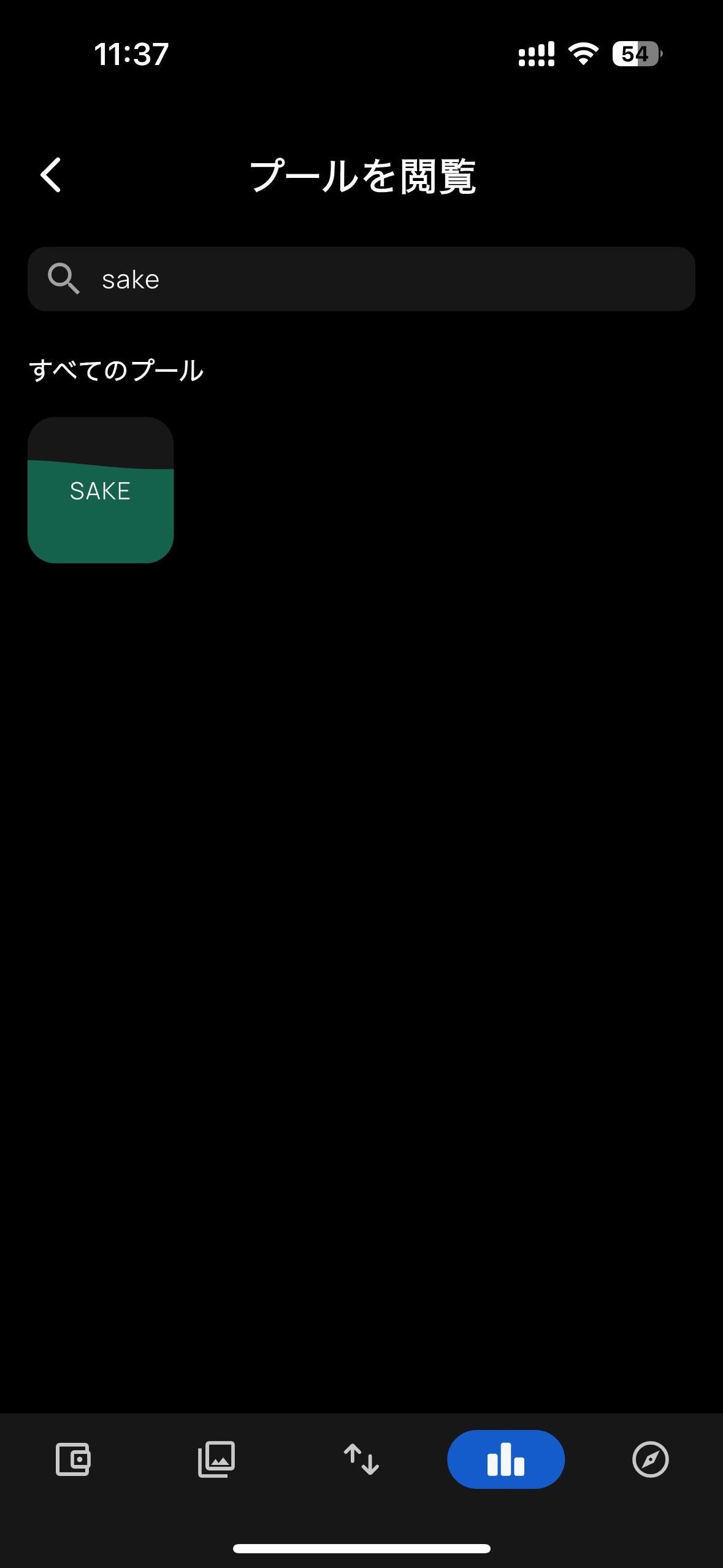 プールを検索に「SAKE」を入力すると、検索結果にSAKEが表示されるのでタップします。