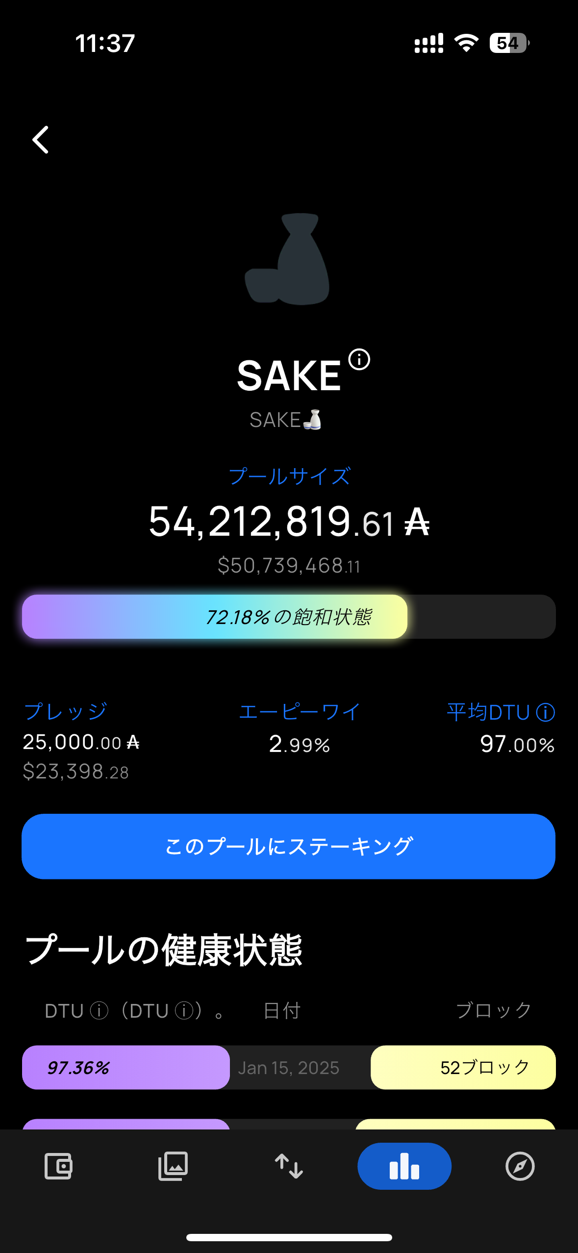 「このプールにステーキング」をタップし、「今すぐ稼ぐ!」をタップするとステーキングされます。
