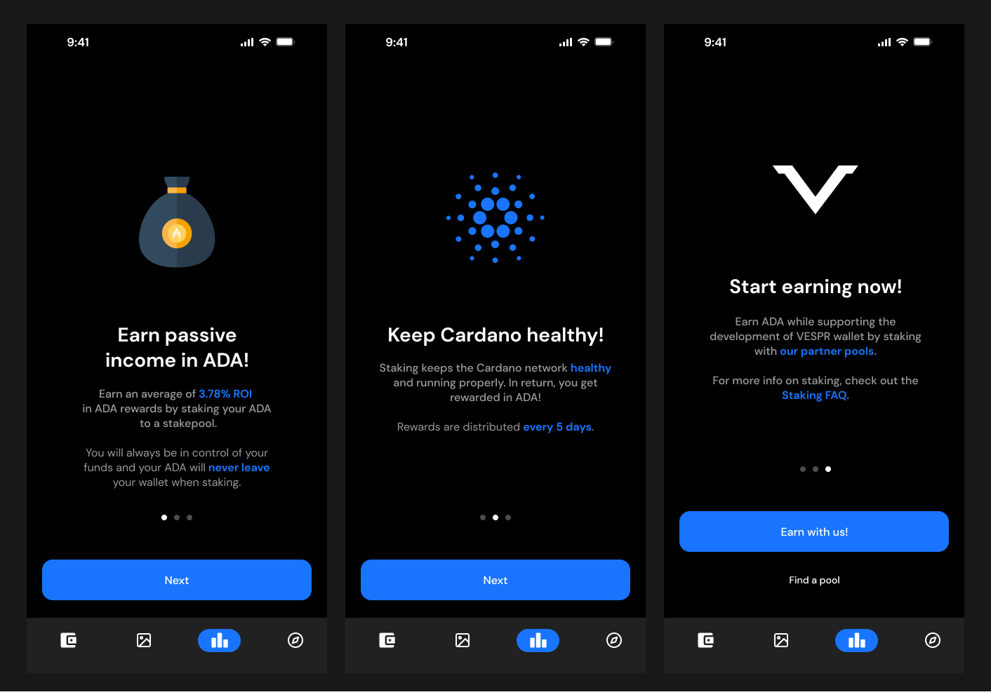 ADA をステーキングするメリットに関する教育スライドが表示されます。