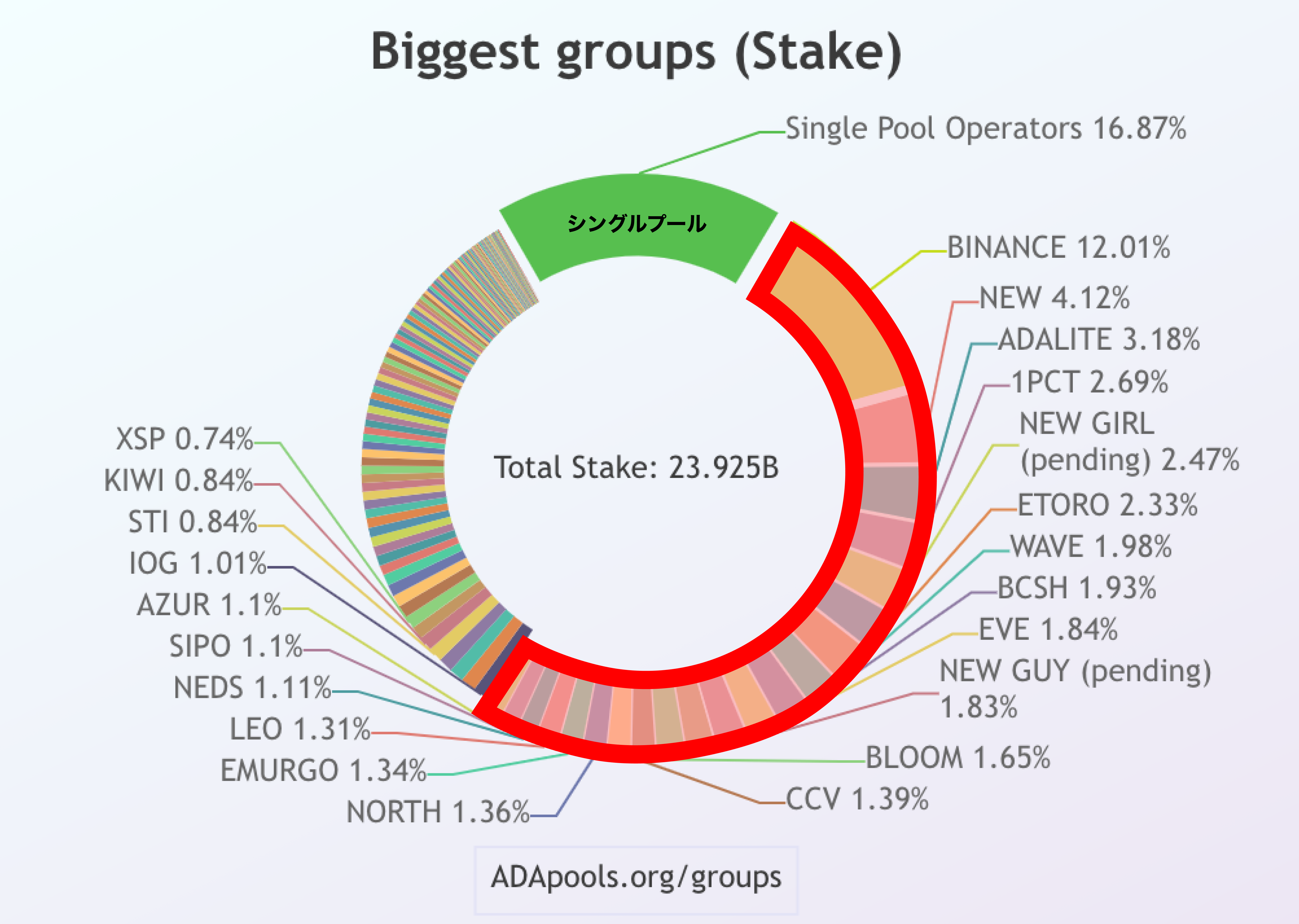 Binanceを例にすると57のプールを運営し、ネットワークの12%のリソースを保有しています。